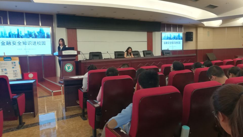为做好 2018 年防范非法集资宣传月活动,提高师生金融安全意识,结合学校实际情况,学校计财处、学生处联合中国建设银行精心组织,于6月8日下午在图书馆弧形会议室举办了金融安全知识进校园专题讲座。